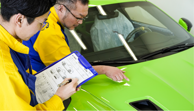 皆様がご満足される施工を行うため、アペックスではドクターの治療と同じように徹底したヒヤリング(問診)を行い、ボディの状況を細かくチェック(診断)し、お客様が納得した上で施工(治療)を致します。