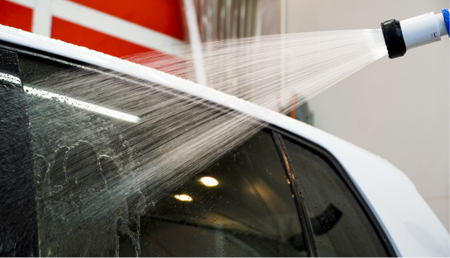 洗車をはじめとした全ての工程で、不純物を99,9%以上取り除いた純水を使用しています。塗装面に不純物が残らないためボディへの負担を軽減し、コーティング剤の密着性が格段に向上します。