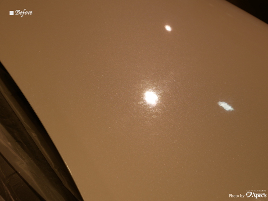 入庫後、ボディの状態を確認すると、経年による水垢汚れや洗車キズなどが見受けられ、塗装本来の艶がやや失われている状態でした。