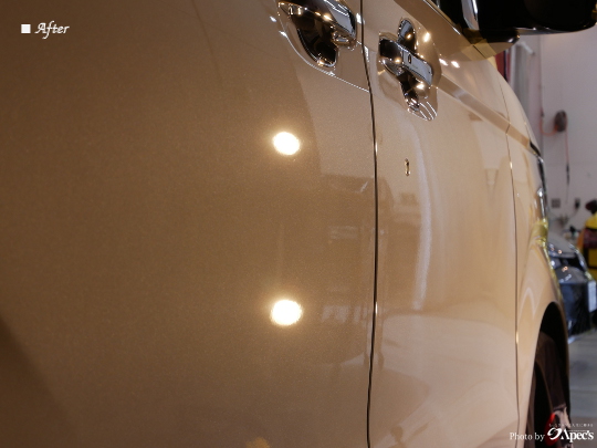 サイドパネルも洗車キズなどのダメージを除去し、全体的にスッキリとした印象に。