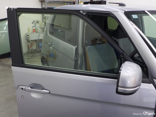 フロントドアには一番クリアーなプレミアム透明フィルムを、リア3面にはスーパープレミアム透明フィルム(サンブロックフィルム)を施工しました。