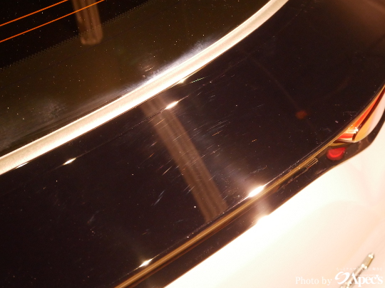また、ピラーや下部などのパーツ類(ピアノブラック・樹脂部分)には、新車であっても保護フィルムの脱着や拭き取りによる細かなキズが見受けられました。