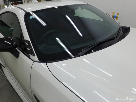フロントガラス5面(フロントドアの小窓含む)にはプレミアム透明フィルムを施工しました。