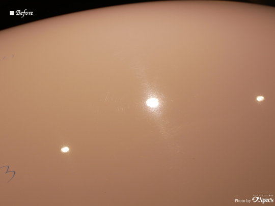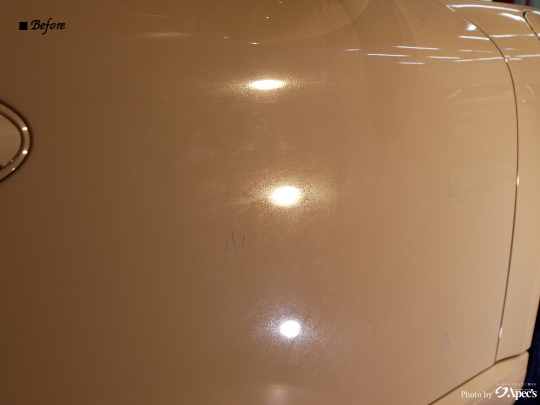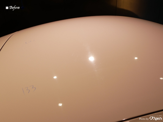 そのため、塗装への負担を抑えつつ、蓄積した洗車キズや水垢によるくすみを整える方向で調整しています。
