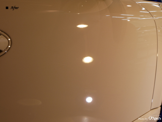現在、ドアパネルとルーフでは研磨によるビフォーアフターがはっきりと現れており、ソリッドホワイト本来の透明感と滑らかな艶が戻りつつあります✨