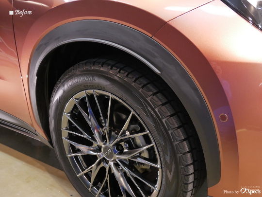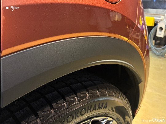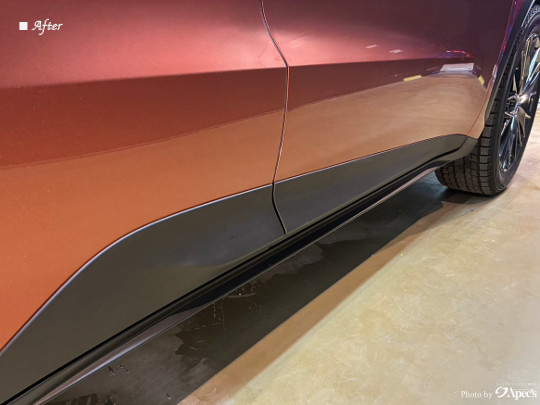 そのうえで専用のコーティング剤を施工することで、色あせてしまった樹脂本来の深みのある黒さをしっかりと復元。さらに紫外線や経年劣化から長期間保護することができます。
