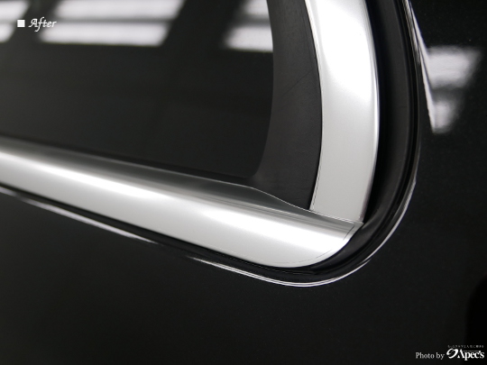 さて、アペックスではこのような輸入車で採用されているアルマイトメッキのメッキモールの復元・綺麗維持も実績があり、メニューにございます。