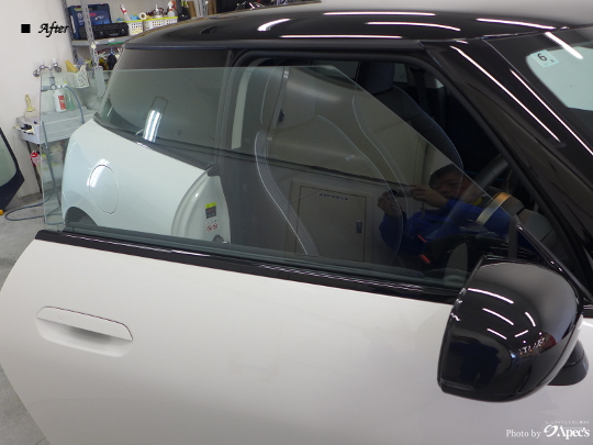 フロントドアガラスにはプレミアム透明フィルムを施工しました。