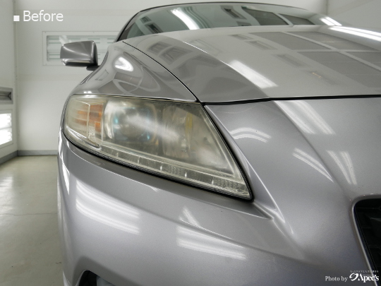 その劣化対策として、ヘッドライトレンズには製造時に劣化を抑えるために「ハードコート」と呼ばれる専用のコーティングが施してありますが、日常的にお乗りになるようなお車ですと、環境にもよりますが、5年ほどで黄ばみやハードコートの剥がれ、クラック等の劣化が見受けられるようになってきます。