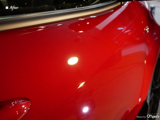研磨後は、赤いボディカラー特有の深みと艶感がしっかりと現れ、スポーティなGRヤリスのボディラインもより引き立つ仕上がりとなりました✨