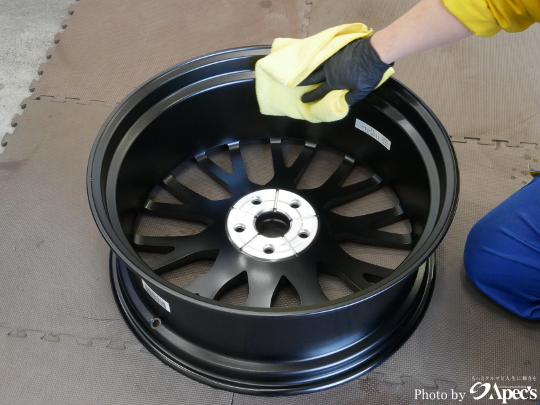 まずはホイールの状態を整えてから、メッキホイール専用コーティングを施工していきます。