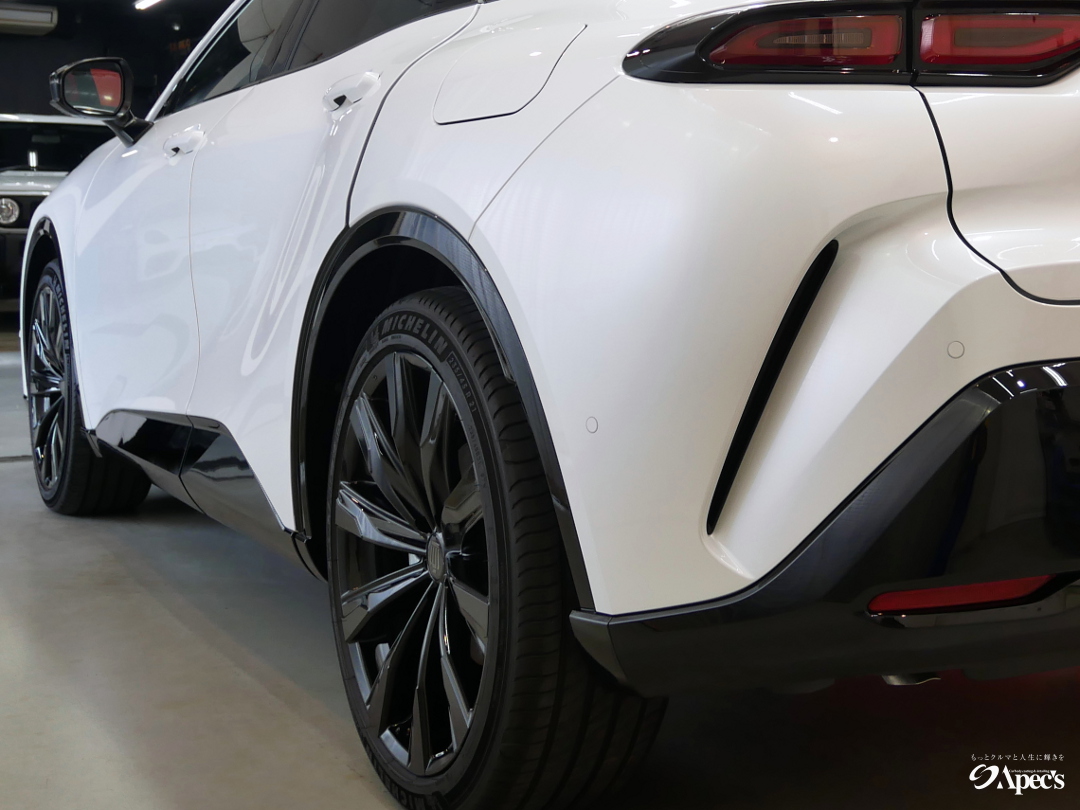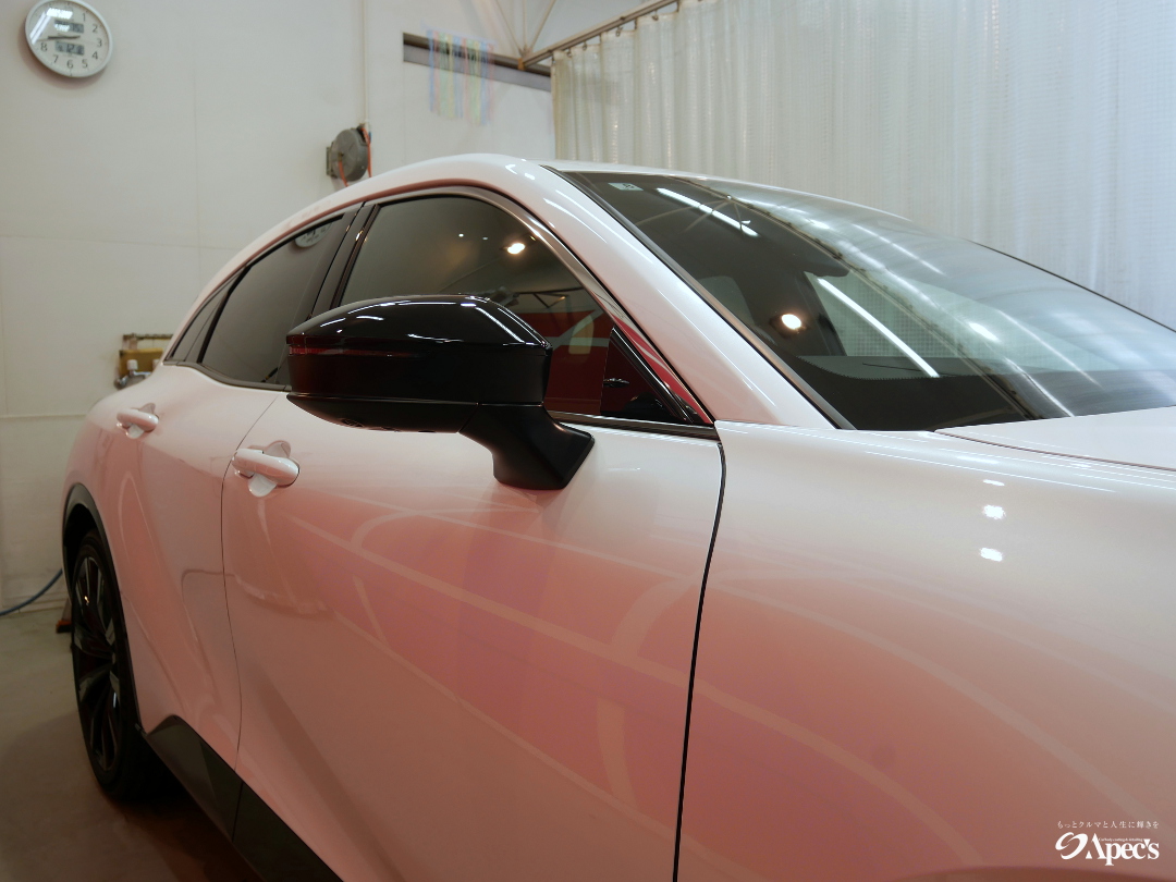 さっそくお車を拝見させていただきますと、ご納車間もない状態でしたのでとても綺麗な状態でしたが、若干、ピラーパネルやテールランプなどの黒色パーツにうっすらと線キズが見受けられました。