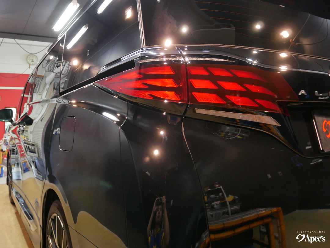 お車をお預かりした際に車両を確認させて頂きましたがシミや傷が多く見受けられましたが下地処理と研磨をすることで綺麗な状態にすることが出来ました。窓ガラスとホイール樹脂をコーティングをすることでお車全体をコーティング被膜で守っていますのでご安心くださいませ!