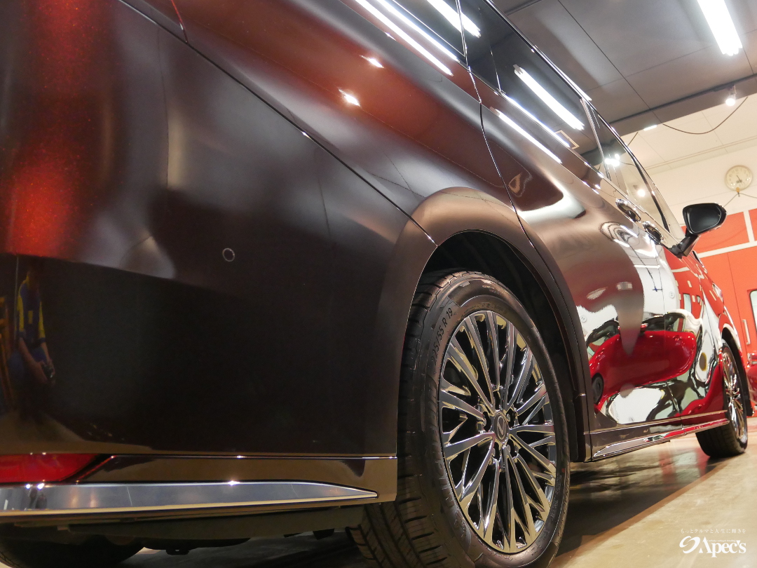 こちらのコーティングは3層構造のコーティングになっていますのでコーティング皮膜がとても厚くてお車を長く綺麗に保つことが出来るコーティングになっています。またボディーコーティングとご一緒にホイールコーティングと窓ガラスコーティングの施工をさせて頂きました。