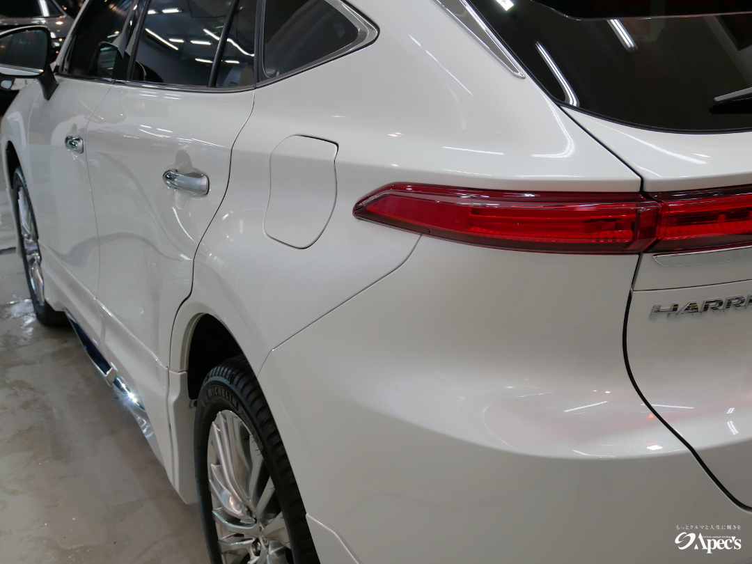 車両入庫した際に車両の状態を確認させて頂くと納車してから2年経過していたのでシミやキズが多く見受けられました。研磨をする事でシミやキズなどの除去を行い新車時のようなキレイな状態に仕上げることが出来ました。