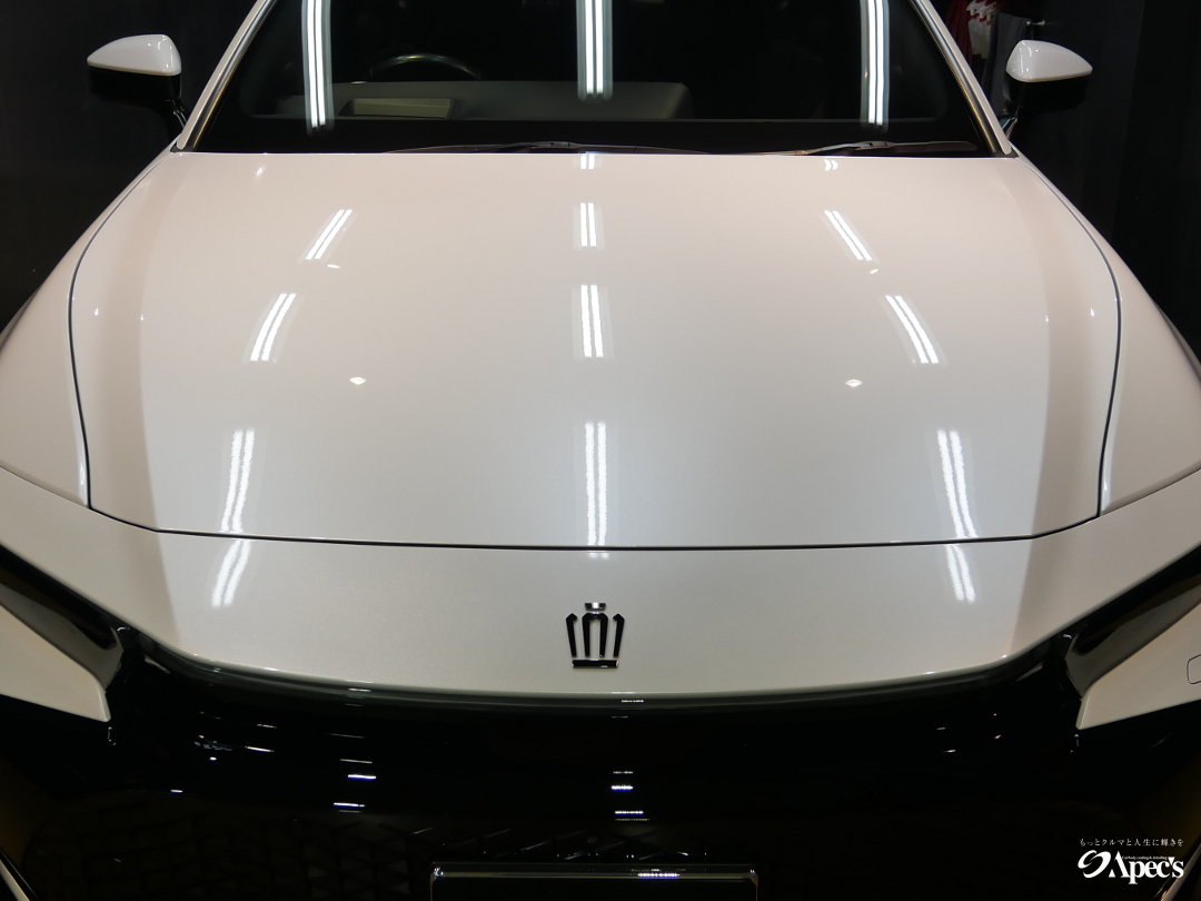 そして、美しいボディを最大限保護するべく、自己洗浄効果のある親水タイプのハイドログラスコーティングを施し、末永く綺麗なお車をお楽しみいただけるようになったかと思います。