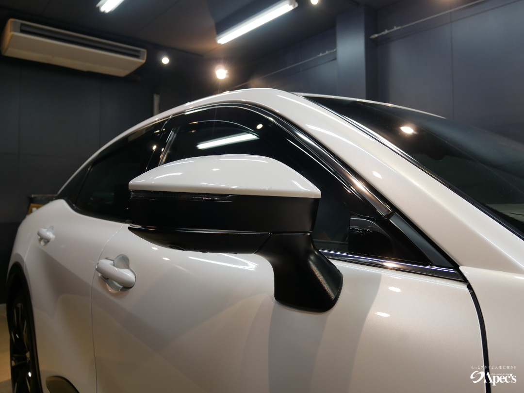 新車時からコーティングを行っていたそうですが、経年によりダメージや蓄積汚れも気になってきたとの事でしたので、ボディコーティングに関しましてはハードポリッシュコースをお勧めさせていただき、窓ガラスに関しましてもボディ同様、綺麗さを取り戻すべく、スケール(お水の乾いたシミ)除去を含めた撥水コーティング施工をさせていただきました。