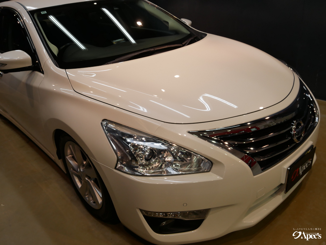 長年当店をご利用いただいておりますリピーター様より、コーティングの再施工をお任せいただきました「ニッサン ティアナ」